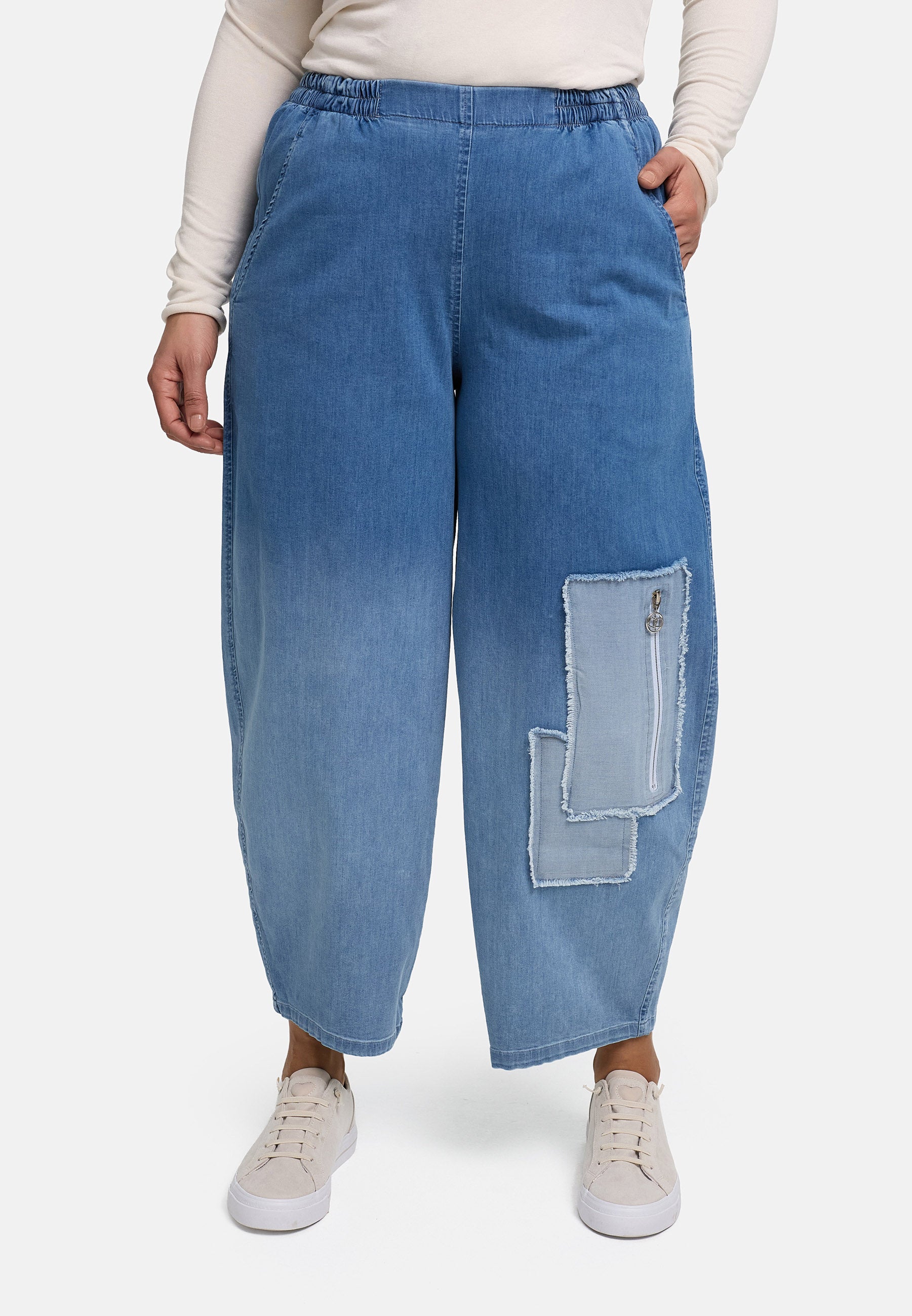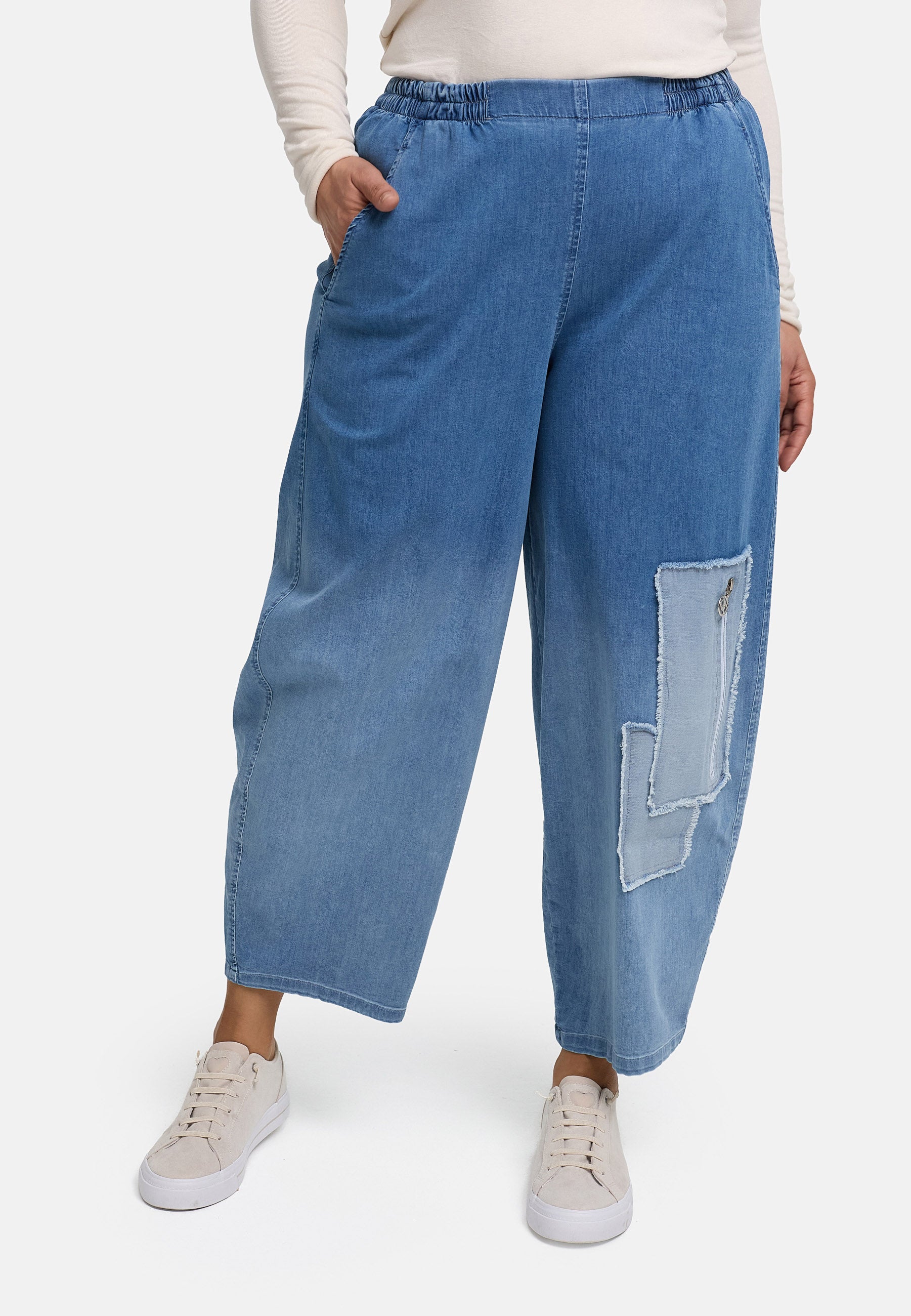 'Sky' Trousers – Premium Denim, Patch & Stretch
